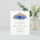 Modern Floral Royal Blue Navy Blue Gold Tiara Sparkle Glitter Birthday Quinceañera Invitation