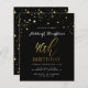 Classy 40th birthday party invitations featuring faux gold foil star confetti and elegant typography against a black background. With a stylish script and serif font combination displaying "40th Birthday". You can easily customize the background color to suit your needs. As part of the budget selection here on Zazzle, these invitations come in limited sizes and paper stocks. If you need a different size or paper stock, this design can be transferred to a standard 5x7 format using the design transfer tool for more options.