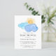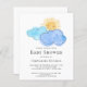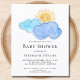 This cute boy's budget baby shower invitation is decorated with watercolor clouds and the sun.