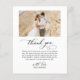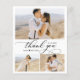 Budget, Modern, Classic, Elegant Script 3 Photo Collage Affordable Wedding Thank You Flyer in Black and White. Stylish, minimalist wedding card template featuring five (3) grid photo collage on the front and one (1) photo on the reverse side. "Thank you" text in a hand lettering typography or calligraphy font script with swash tail. Little love heart motif between the names. Personalize with your name and thank you message. If You need help or matching item, please contact to designer!