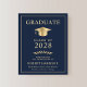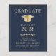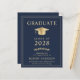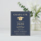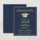 Elegant and budget-friendly dark blue college graduation announcement featuring a gold graduation cap and simple modern light gold typography for the graduate's name, class year, college or university, degree and major or honors.