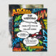A fun, cool, and trendy retro comic book pop art-inspired wedding budget invitation that puts the wham, zap, pow into any superhero couple's celebration event. Add your special photo on the reverse. Designed by Thisisnotme©