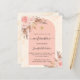 An arch frame and rose gold marble print as background. Decorated with rose gold and pink florals, roses and pampas grass. Personalize and add a name and details.