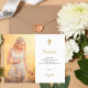 A modern and elegant confirmation thank you card for both her and him. A chic white background decorated with a golden cross. Personalize and add your photo, thank you note and name.