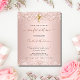 A rose gold faux looking background. Decorated with rose gold, pink faux glitter dust. Personalize and add a name and details. The name is written with a hand lettered style script