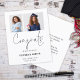 A value for money BUDGET alternative on a smaller size 4.5 x 5.6” semi-gloss 110lbs weight, which is of similar thickness to a postcard (however is not suitable to use as a postcard.). PLEASE NOTE there is ONE per sheet. Budget Congrats 2 Photo 2024 Graduate Announcement. Modern and contemporary style to let everyone know the news of your grad. Simply replace the two sample photos with your own and personalise with your graduate's name, high school, year and message on the back. Congrats is in an elegant set script.