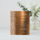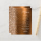 This elegant modern wedding menu features a faux diamond glitter border on a copper faux brushed metal background. The customizable text combines white handwriting script and sans serif fonts. The copper brushed metal and glitter design is repeated on the reverse side.