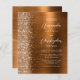 The left-hand edge of this elegant modern wedding invitation features a copper faux glitter border. The customizable text combines white handwriting, copperplate and italic fonts on a copper faux brushed metal background. The reverse side provides space for wedding details on a copper brushed metal background, along with a QR code guests can scan to visit your website and RSVP, which saves the cost of printing and mailing separate RSVP cards.
