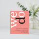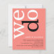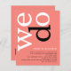 A value for money BUDGET alternative on a smaller size 4.5 x 5.6” semi-gloss 110lbs weight, which is of similar thickness to a postcard (however is not suitable to use as a postcard.). PLEASE NOTE there is ONE invite per sheet. BUDGET Simple Coral Rose Text QR Code Wedding Invite. Add your QR code to your wedding website on the back so your guests can RSVP and see all the details online without the need for separate enclosures. A modern typographical design with We Do in large typography rotated and to the side at the top in white and black on a background of coral rose. Background and text colors can be changed if you wish via Customize further.