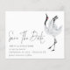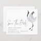 A value for money BUDGET alternative on a smaller size 4.5 x 5.6” semi-gloss 110lbs weight, which is of similar thickness to a postcard (however is not suitable to use as a postcard.). PLEASE NOTE there is ONE invite per sheet. Budget Crane Script QR Code Save The Date. Add your QR code to your wedding website on the back by replacing the QR code on the sample. A minimalist contemporary design with Save The Date in a modern set script an beautiful bird illustration to the right. The rest of the text you can easily personalize.