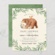 Budget Cream Greenery Forest Animals Baby Shower Invitation. A gender-neutral baby shower with hand-painted forest animal friends: a deer fawn, bunny rabbit, owl, bear cub, and squirrel framed by a border of watercolor greenery. Featuring a chic, rustic script typography on a cream background. Perfect for baby boy, baby girl, gender neutral or gender reveal shower.