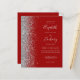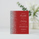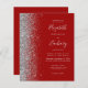 The left-hand edge of this elegant modern wedding invitation features a silver faux glitter border. The customizable text combines pale silver gray handwriting, copperplate and italic fonts on a crimson red background. The reverse side provides space for wedding details on a solid crimson red background, along with a QR code guests can scan to visit your website and RSVP.