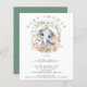Budget Cute Elephant Sage Baby Shower Small Invitation. A budget price SMALLER 4.5” x 5.6” alternative. Available in a SEMI-GLOSS 110 lb CARD STOCK which is the default option (thicker for invitations), OR a SATIN FINISH 80 lb THINNER PAPER STOCK (ideal for enclosures). Envelopes are an optional extra and are slightly larger than the card size. Jungle cuteness with this adorable elephant within a vintage foliage frame. Easily personalise the text. A coordinating sage background is on the back. You change the fonts and text and background colors if you wish via the Click to Customize Further option.