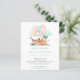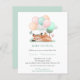 Cute Fox Teal Baby Shower Invitation . A budget price SMALLER 4.5” x 5.6” alternative. Available in a SEMI GLOSS 110 lb CARD STOCK which is the default option (thicker for invitations), OR a SATIN FINISH 80 lb THINNER PAPER STOCK (ideal for enclosures). Envelopes are an optional extra and are slightly larger than the card size. Woodland charm with this adorable sleeping baby fox with teal bow and pastel colored balloons. Easily personalise the typography beneath.