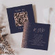 Budget Dark Blue Rose Gold Wedding QR Code RSVP Enclosure Card