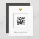 This sheet has a white front and a dark gray background on the reverse. On the front, you'll list the QR code of your wedding website where your guests can RSVP, as well as your names. On the reverse, you'll add a personal message to your guests. You can then place your first names, or if you prefer, you can delete this and sign it at home.