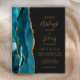 The left-hand edge of this elegant modern wedding invitation features a teal watercolor agate border trimmed with faux gold glitter. The customizable text combines gold colored handwriting, copperplate and italic fonts on a dark charcoal gray background. The reverse side features a matching teal and gold agate design. NOTE: Envelopes are not automatically included with these budget invitations, so please remember to choose the "blank white envelopes" option!