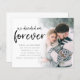 Budget Decided on Forever Photo QR Code Save The Date. A budget price SMALLER 4.5” x 5.6” alternative. Available in a SEMI-GLOSS 110 lb CARD STOCK which is the default option (thicker for invitations), OR a SATIN FINISH 80 lb THINNER PAPER STOCK (ideal for enclosures). Simply replace the sample photo with your own favorite which is to the right hand side. A gradient overlay layer is on top of your photo so it fades out as it reaches the center with the text partially overlaid on top. We Decided on Forever is in an informal bold set script and easily personalize the rest of the text. If you have a wedding website, add your QR code to your wedding website on the back by replacing the QR code on the sample or delete this code and text if not required via customize further. You can create QR codes for free online. Simply search “QR code creator” and lots of options come up to create for free.