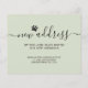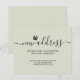 This budget green dog moving announcement card is decorated with stylish script typography and a dog paw.