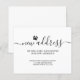 This budget dog moving announcement card is decorated with stylish script typography and a dog paw.
