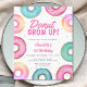 This Budget Donut 1st Birthday Invitation is decorated with watercolor donuts in shades of pink and aqua. It says "Donut Grow Up" in stylish typography.