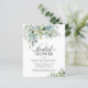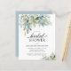 Budget Elegant Pale, Dusty Blue Eucalyptus Greenery Bridal Shower Invitation featuring our lovely sage eucalyptus green and dusty blue greenery and modern typography. The back is a lovely dusty blue. Easy to customize with your information for a simply elegant bridal shower invitation. **Our BUDGET paper is smaller and more delicate, but still beautiful!** For a comparison of paper types, please watch our video here: https://youtu.be/G0F9Am5HPD4 If you need assistance or matching items, please contact us at cedarandstring@gmail.com.