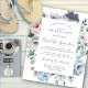 Dusty blue roses and wildflowers decorate a pretty birthday invitation. Modern calligraphy adds to the Boho Vibe.