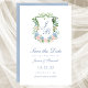 These beautiful dusty blue and blush watercolor floral monogrammed crest wedding Save the Date cards are perfect for announcing your wedding date to friends and family. They're absolutely perfect for any time of year. The personalized monogrammed floral crest is unique and elegant and the coordinating dusty blue watercolor back is lovely. All of the design at a fraction of the cost.