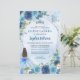 Modern Dusty Blue Silver Slate Gray Glitter Sparkle Floral Rose Butterfly Princess Tiara Crown Quinceañera Birthday Invitation