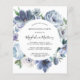 Dusty blue peonies form a round frame around your birthday party details on this elegant budget invitation.