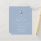 This elegant baptism invitation features a watercolor bouquet of dusty blue and navy blue flowers and silver foliage on a silver faux foil cross, above the words "please join us for the baptism of our son" in elegant white handwriting calligraphy and italics pm a dusty blue background. Personalize it with the name in white script and the details in sans serif font. The back of the card is solid dusty blue. Ideal for a boy's baptism.