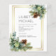 Beautiful Eucalyptus leaves and winter pine cones with dusty blue accents feature on this fall, autumn, winter wedding items. Part of a larger collection that includes budget wedding invitations, save the dates, RSVPs, thank you photo cards, bridal and wedding party gifts, and more. For a detailed FREE winter wedding planning, guide visit weddingdesignchic.com.