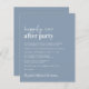 Simple budget-friendly dusty blue wedding announcement and reception invitation. The front features "Happily Ever After Party" in a mix of a contemporary white script and bold modern white typography. Personalize your message and invitation and add your names in a signature-like script. This budget semi-gloss paper is similar in weight to photo paper. A larger 5x7 traditional card stock version is also available (message us for the link).