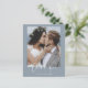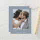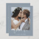 Budget Dusty Blue Wedding Thank You Cards that have a photo on the front and back. The Thank you cards contain a modern hand lettered cursive script typography that are elegant, simple and modern to use after you wedding day celebration.