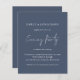 Budget Dusty Navy Blue Wedding Evening Party Invitation. A budget price SMALLER 4.5” x 5.6” alternative. Available in a SEMI GLOSS 110 lb CARD STOCK which is the default option (recommended for invitations), OR a SATIN FINISH 80 lb THINNER PAPER STOCK (ideal for enclosures). A set handwritten style for Evening Party and the rest of the text you can easily personalise. The text and background colors can be changed to any or your choice via the customise further option.