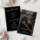 Modern simple minimalist white script trendy solid black ceremony and party BUDGET affordable wedding program template featuring chic trendy romantic elegant calligraphy and custom photo dark overlay on the backside. ++++++++++++ Easy to personalize with your custom text and picture on both sides!