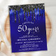 Budget Elegant Blue Black Glitter Drip 50 Birthday