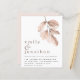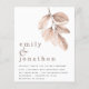 Budget Elegant Blush Leaves Wedding Invitation. A budget price SMALLER 4.5” x 5.6” alternative. Available in a SEMI-GLOSS 110 lb CARD STOCK which is the default option (thicker for invitations), OR a SATIN FINISH 80 lb THINNER PAPER STOCK (ideal for enclosures). Envelopes are an optional extra and are slightly larger than the card size. Informal style. Soft blush and cream leaves flow in from the top right and your names are large below in stylish lowercase with the details at the bottom. Easily personalise the text to your own details.