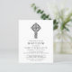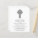 An elegant budget-friendly baptism invitation featuring an illustration of a Celtic cross and simple modern typography.