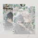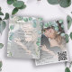 Trendy elegant classy watercolor sage green and dusty blue botanical garden frame with transparent photo overlay all in one rsvp online BUDGET all in one wedding invitation featuring a chic modern calligraphy script. ++++++++++ Easy to personalize with your details, one or two custom engagement photos and your QR code to the wedding website. +++++++++++++++++++++++++++++ PLEASE READ THIS BEFORE PURCHASING! This is a budget affordable wedding card printed on a paper sheet (each sheet has one card). ++++ For the best rapport price-quality, our advice is to choose the Semi-Gloss paper type (it is thick enough to be used for stationery) ++++ If you need envelopes, choose the ENVELOPE OPTION. +++ Double-check all the information and spelling of your text because you will receive exactly what you see - no one else will check anything before printing. ++++ This card is designed for size 4.5" x 5.6". In the case you choose another size of the card and text goes outside page, everything needs to be fixed before adding the product to cart. Please ask Live Design Service for help.