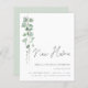 A value for money BUDGET alternative on a smaller size 4.5 x 5.6” semi-gloss 110lbs weight, which is of similar thickness to a postcard (however is not suitable to use as a postcard.). PLEASE NOTE there is ONE invite per sheet. Budget Elegant Eucalyptus Script Moving New Home. Minimalist style to let everyone know your new address with stylish script set typography for the header and easily personalise the rest of the text with your details. A branch of watercolor eucalyptus leaves run down from the top on the left hand side.