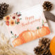 Send warm holiday wishes with this elegant floral Thanksgiving card. Featuring watercolor pumpkins and fall blooms in soft rustic tones, this design is perfect for sending holiday greetings to your customers. Easily personalize the text with just a few clicks.