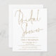 A value for money BUDGET alternative on a smaller size 4.5 x 5.6” semi-gloss 110lbs weight, which is of similar thickness to a postcard (however is not suitable to use as a postcard.). PLEASE NOTE there is ONE invite per sheet. Budget Elegant Gold Script Bridal Shower Invitation. This modern design for your Bridal Shower Invitees has set elegant script for Bridal Shower at the top and easily personalise with your details beneath. Shown in classic gold and white, altough you can also change text and background colors on either side if you wish via the Customize Further option.