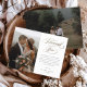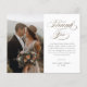 This modern photo wedding thank you note features gold script thank you, personal message and a vertical photo on the front. The back includes a second photo that is a full bleed horizontal photo. Click edit to customize this design.