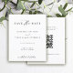 Classy minimalist formal calligraphy script modern BUDGET wedding save the date card with your QR CODE. +++++++++++ Suitable for any season and theme. ++++++++++ Easy to personalize with your text! +++++++++ PLEASE READ THIS BEFORE PURCHASING! This is a budget affordable wedding card printed on a paper sheet (each sheet has one card). ++++ For the best rapport price-quality, our advice is to choose the Semi-Gloss paper type (it is thick enough to be used for stationery) ++++ If you need envelopes, choose the ENVELOPE OPTION. +++ Double-check all the information and spelling of your text because you will receive exactly what you see - no one else will check anything before printing. ++++ This card is designed for size 4.5" x 5.6". In the case you choose another size of the card and text goes outside page, everything needs to be fixed before adding the product to cart. Please ask Live Design Service for help.
