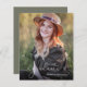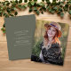 Budget Modern Elegant Script Photo Graduation Announcement featuring your photo and our trendy script overlay in white The back is a boho chic sage green, but all fonts and colors are easily modified. Stylish swirly text sets off your photo. Perfect for celebrating your graduate! Chic and darling. Please contact us at cedarandstring@gmail.com if you need assistance with the design or matching products.