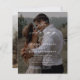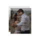 A simple and chic photo wedding invitation featuring elegant script calligraphy details and classic text overlay on a portrait vertical photo on the front. The back has a full bleed photo. Click the edit button to customize this design.