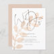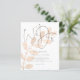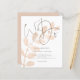 A budget price SMALLER 4.5” x 5.6” alternative. Available in a SEMI-GLOSS 110 lb CARD STOCK which is the default option (thicker for invitations), OR a SATIN FINISH 80 lb THINNER PAPER STOCK (ideal for enclosures). Envelopes are an optional extra and are slightly larger than the card size. A tinted background of artsy peach leaves from top to bottom and artsy set script We Do taking center stage at the top. Envelopes are an optional extra. The rest of the text you can easily personalise.