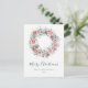 Merry Christmas! Send your Christmas greetings to your family and friends with this elegant budget postcard. The design features a watercolor greenery, pine cone, red berry and winter fruit wreath.