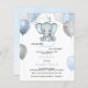 This adorable baby shower invitation features blue and gray baby boy elephant with balloons and confetti. Back features soft blue watercolor. Easily customized for your event by clicking personalize. Perfect if you need a stylish baby shower on a budget.